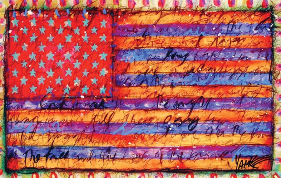 The spring after the tragic events of 9/11/01, Tim and his son went through the process of erecting a flagpole in their backyard to proudly display their American flag as a remembrance to all those lost and a show of their patriotism as a family. He felt that this raw, beautiful, organic act was a precious moment with his son. Erecting that flagpole gave him the inspiration to create the first Yanke Doodle. He started to play with non-traditional colors for the flag, each representing the different cultures, countries and communities who had come to find a home in America. To this day, the American flag waves proudly at his home.