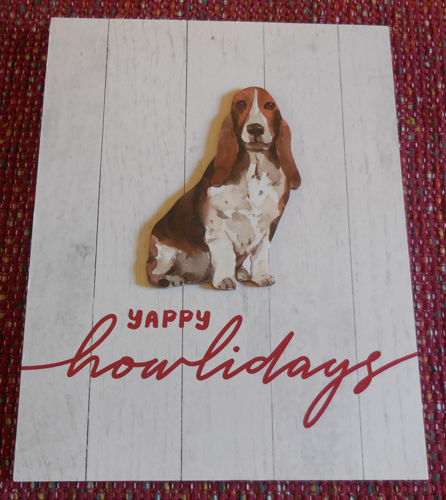 8 x 10 white sign with basset and sentiment Yappy Howlidays.
