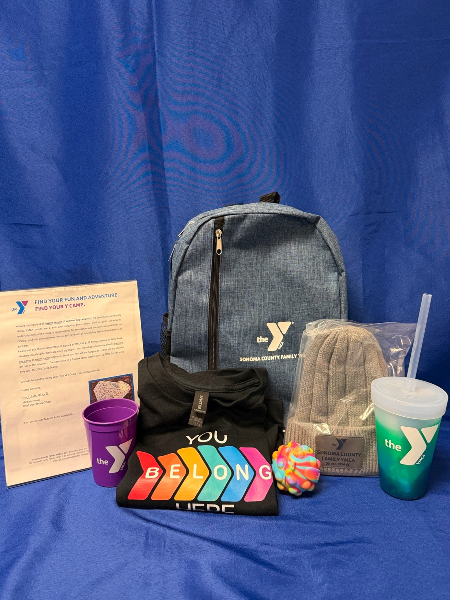 Join us for an exciting week of summer fun at the Santa Rosa YMCA! This auction includes a one-week session of either day camp or sports camp, providing your child with a fantastic opportunity to make new friends and engage in various activities. To enhance the camp experience, you'll receive a stylish backpack, a cozy beanie, a durable water cup, a fun stress ball, and a comfortable t-shirt in size L. Don’t miss out on this amazing package that combines adventure, learning, and great merchandise!