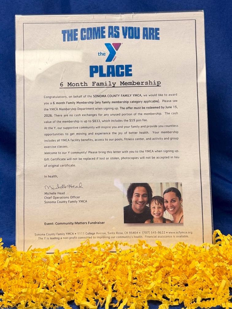 Experience a healthier lifestyle with a 6-month Family Membership to the Santa Rosa YMCA! This membership provides access to a variety of facilities and programs designed for families of all sizes. Enjoy swimming, fitness classes, and recreational activities that promote wellness and togetherness. Create lasting memories while staying active and engaged with your loved ones at the YMCA. Don’t miss out on this opportunity to invest in your family's health and happiness!