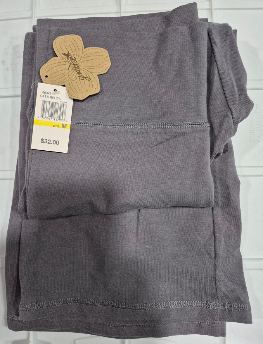Yoga pants, knit, wide waistband, flare leg, size M. New with tags. $32.00 Value. Donated by Robyn McGeorge