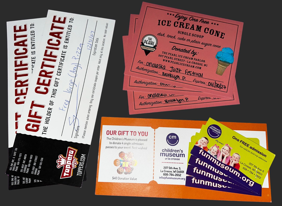 Experience a fun-filled day with your family using this exciting auction package! This "Saturday Solution" includes 4 passes to the La Crosse Children's Museum, where your kids can explore and learn through interactive exhibits and hands-on activities. After a day of adventure, enjoy a delicious meal with a gift certificate to Topper's Pizza, perfect for satisfying those post-museum hunger pangs. To top off your day, indulge in 3 single scoops of ice cream from The Pearl, located in downtown La Crosse, where you can treat your little ones to a sweet delight. Don't miss this opportunity to create unforgettable memories this weekend!