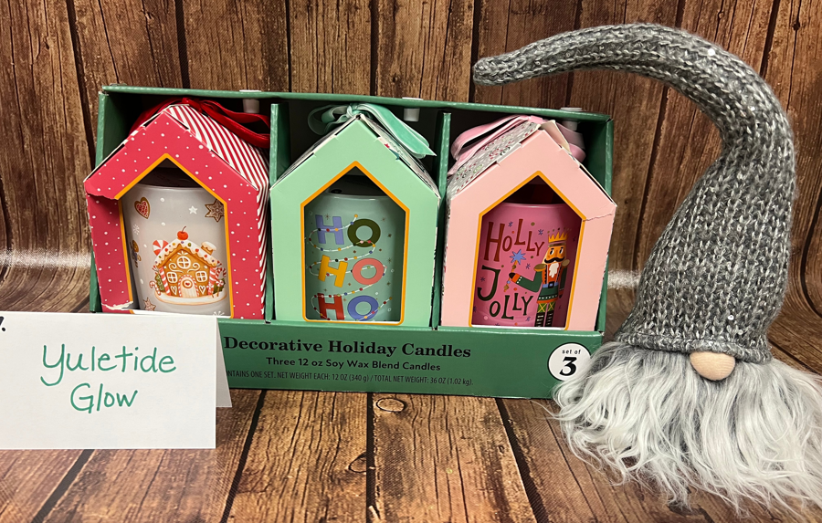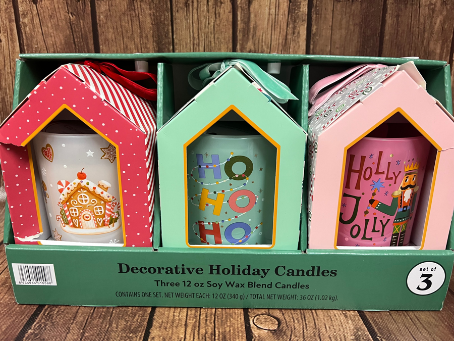 Set of 3 decorative holiday candles (12oz each) Holiday gnome